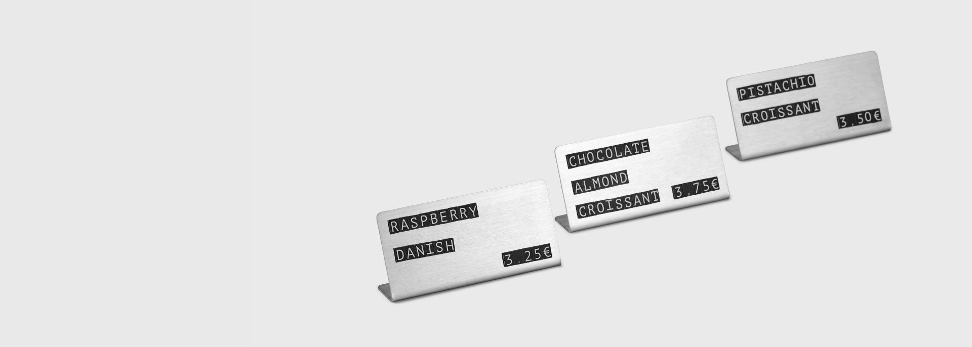 We create professional solutions for businesses with physical spaces. Currently, we focus on communicative items such as price tags, signage, menus - all those objects at your locations that directly communicate with your visitors. These thoughtful details influence the perception of your offers by customers, create the atmosphere and mood, and thus increase the profitability of your business.