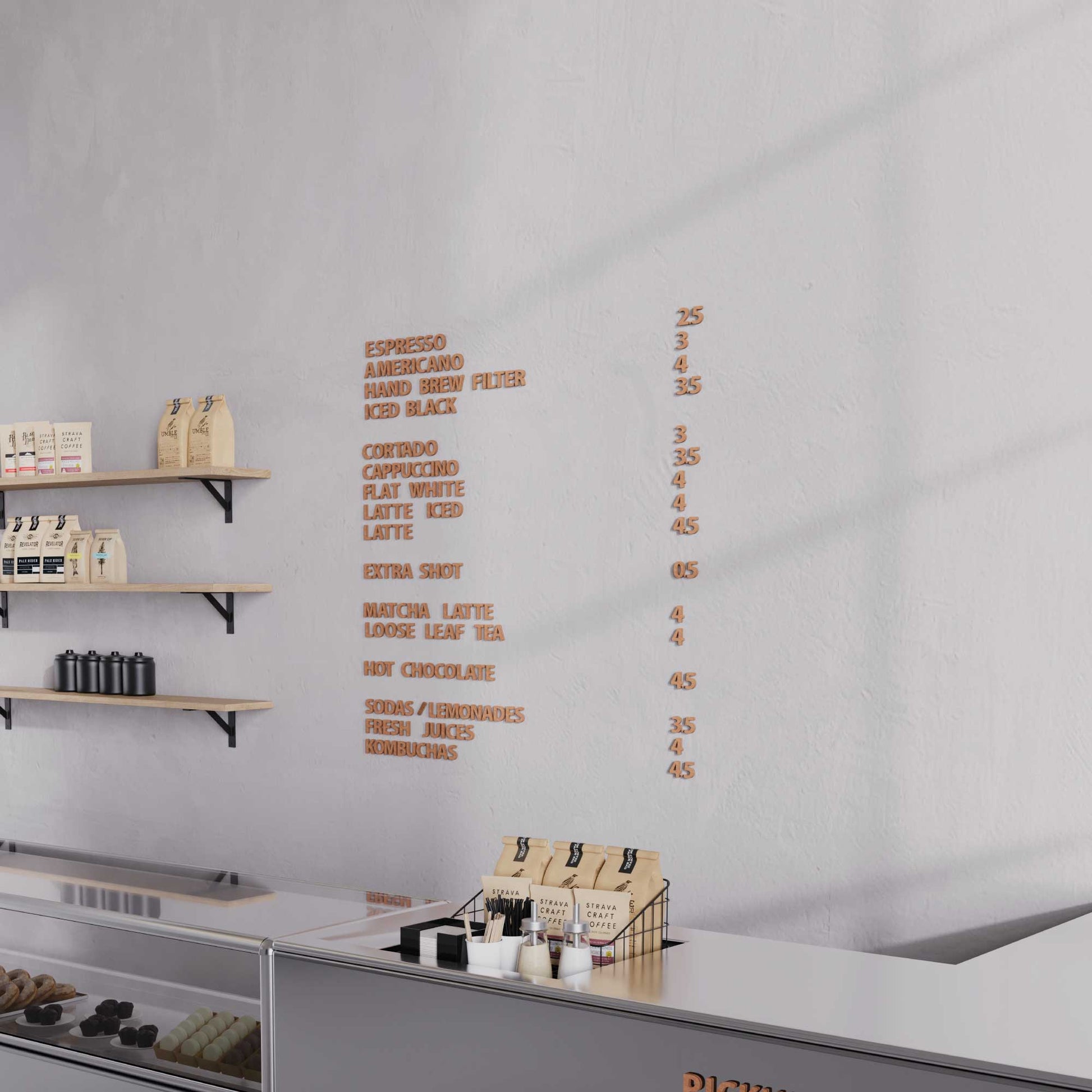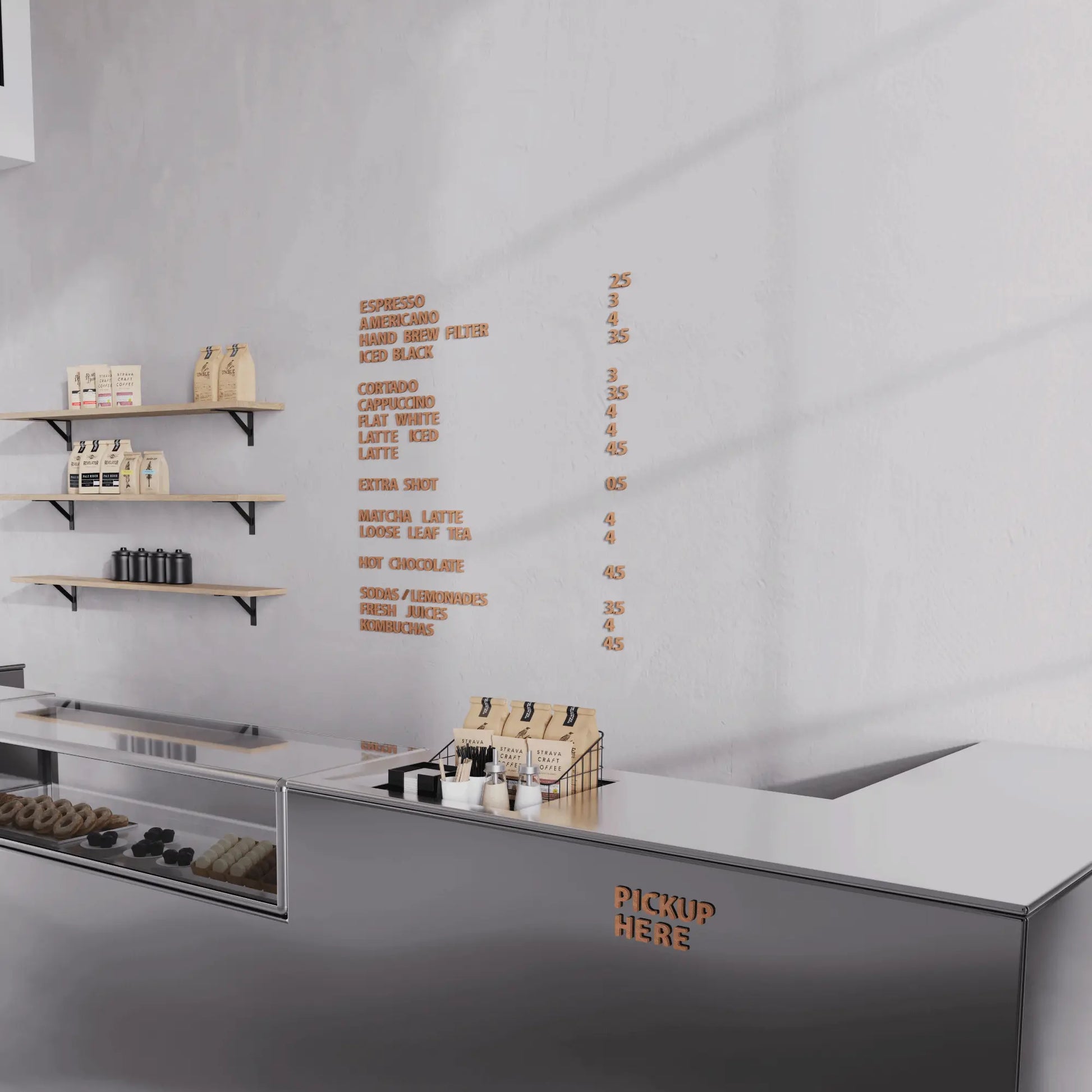 A trendy and clean design solution - no need for metal boards or chalkboards. It's an elegant and highly readable look for your customers, emphasizing the style and uniqueness of your space!