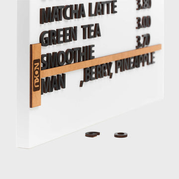 All our letter sets are compatible with every NOKU magnetic Menu Board, and you can expand your collection at any time with additional letter sets in black, white, or pale wood.